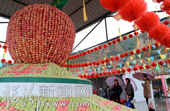 9月24日,由优质苹果做成的巨型苹果吸引了游客的眼球。