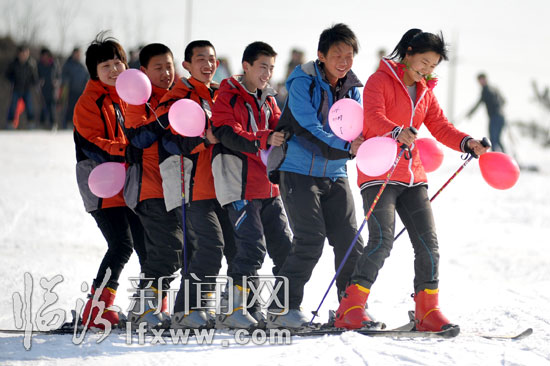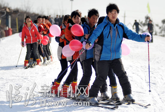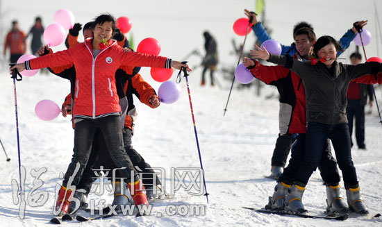 2月14日,在我市东岭生态滑雪场,市民在感受滑雪的乐趣。当日是情人节,该滑雪场举行了“牵手情人节,浪漫去滑雪”主题活动,以激情双人滑雪、冰雪浪漫之旅、许愿墙等形式,吸引了众多市民前来体验冰雪的快乐。(记者 闫锐鹏 摄影报道)
