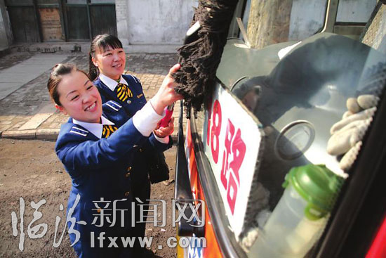 霍春苗是市公交公司的一名普通的司乘人员,她在这个平凡的岗位上已经干了6年,每次交班前,她都会把车收拾得干干干净净,以便顺利交接下一岗。(记者 郝海军 摄)