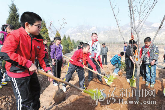 植树节前后,我市各界群众抓住有利时机,纷纷到植树一线为绿化家园贡献力量,掀起植树造林的热潮。 记者 赵俊堂 李自强 通讯员 郑少婕 摄
