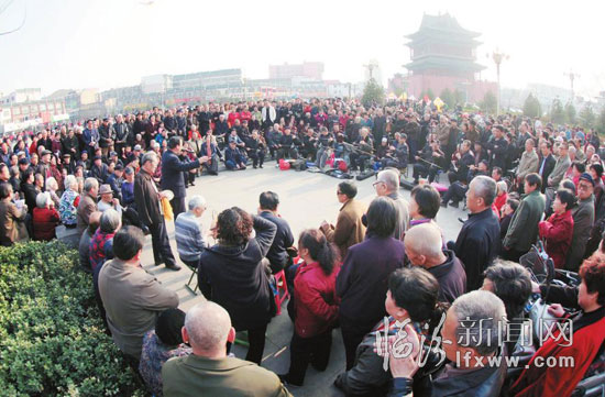 3月12日,众多市民聚集在市区鼓楼广场,一起唱歌听戏。随着天气逐渐转暖,广大市民纷纷来到户外,自发组织开展形式多样的文体活动,享受春天的温暖。 通讯员 张旦 摄