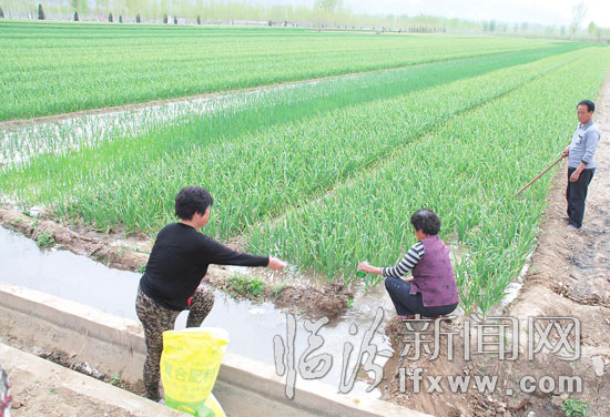 临汾新闻网讯 4月15日,曲沃县北董乡南下郇村村民正在给蒜浇地和施肥。该乡以打造“三晋大蒜第一乡”为目标,充分利用当地水资源的优势,大力发展大蒜种植,先后引进了多个大蒜优良品种,成立专业合作社,为蒜农提供产前、产中、产后服务,调动了蒜农种植大蒜的积极性。目前,该乡大蒜种植面积达2万多亩。(记者 李自强 摄)