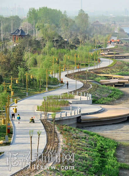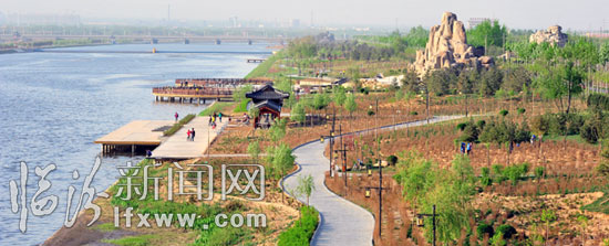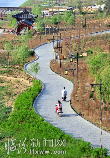 临汾市汾河城区段生态环境综合治理修复与保护工程总投14.9亿元,以打造“临汾客厅,城市绿肺,一川清水,两岸锦绣”为建设目标,包括河道治理水利工程、湿地保护生态工程、市民休闲景观工程,自2009年5月20日开工奠基以来,广大建设者放弃节假日休息,24小时施工不间断,确保五一劳动节期间正式向市民开放。(记者 闫锐鹏 摄影报道)