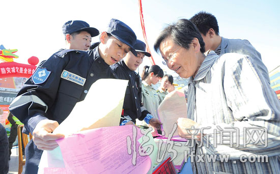 临汾新闻网讯 5月12日,我市蓝天救援队的志愿者在为市民讲解地震逃生知识。当天是“全国防灾减灾日”,今年的主题为“防灾减灾,从我做起”。我市蓝天救援队志愿者深入到学校、社区、农村开展防灾减灾宣传活动,为市民讲解地震逃生等知识,以提高市民的灾难防范意识和能力。(记者 李虎威 摄 )