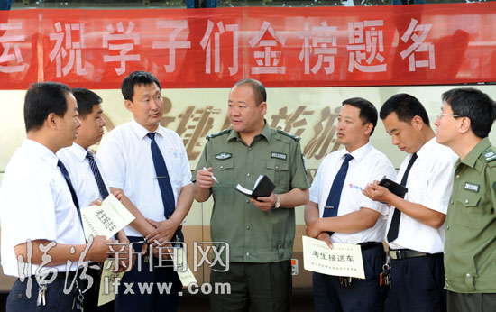 临汾新闻网讯 为了更好的服务2011年高考,市道路运输管理局启动“爱心助考”贴心服务工程,组织全市旅游大巴60余辆共2500个座位,以及200余辆出租车和全市的公交线路免费为考生提供乘车服务,细致热情的服务于考生。 (记者 闫锐鹏 摄影报道)
