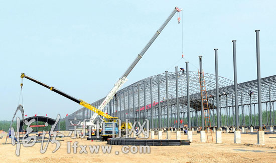 临汾新闻网讯 近日,洪洞县辛村新型建材工业园恒美陶瓷生产线项目正在紧张施工。该县大力发展天然气、煤层气等清洁能源工程,先后引进了美的家电、恒美陶瓷等低碳产业,以绿色能源为支点,着力推进能源结构新型化。 (记者 闫锐鹏 摄)