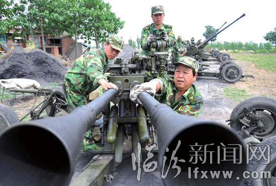 6月19日,作业人员在尧都区气象局人工防雹作业中心调试“三七”高炮。夏收以来,尧都区气象局和尧都区武装部联合在魏村镇成立人工防雹作业中心,24小时待命,密切关注雷达实况,适时根据气象信息开展人工防雹作业,确保夏收工作顺利开展。记者 闫锐鹏 摄