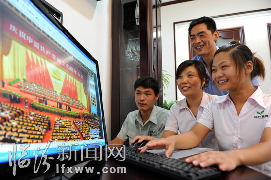 临汾新闻网讯 7月1日,侯马金世纪家居城双叶家具的工作人员在收看庆祝中国共产党成立90周年直播盛况。当日,我市各界群众、机关单位纷纷以不同形式收听收看庆祝中国共产党成立90周年直播盛况,庆祝我党90华诞的到来 。 (记者 闫锐鹏 摄)