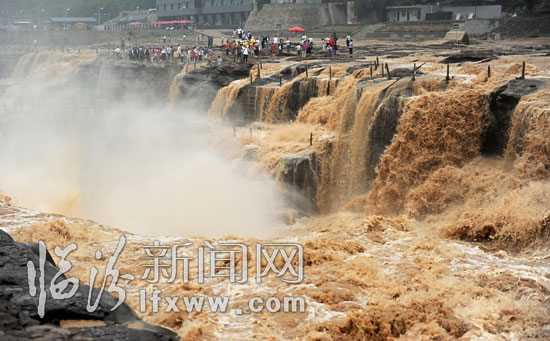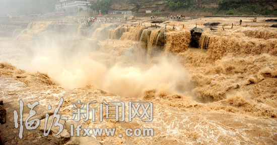 汹涌奔腾的壶口瀑布。