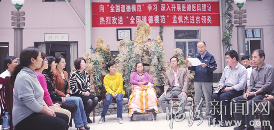 图为市第三人民医院医护人员和社会各界人士欢送孟佩杰赴京领奖。