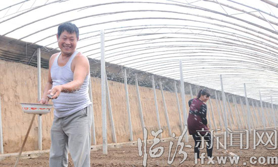 临汾新闻网讯 近段时间,襄汾县陈郭村50户农民做梦都在笑。该村村委会投入资金500余万元建起了50个蔬菜大棚,提供给农民种植,不收任何费用,收益全归农民个人。农民陈合民高兴地说:村里建棚我来种,不愁以后没钱挣。” 记者 李虎威 摄