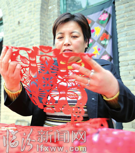 浮山县素有“剪纸之乡”的美称,这里的剪纸艺术有着数百年的历史,2008年被确定为山西省第二批省级非物质文化遗产保护项目。目前,浮山剪纸的从业人员有40人左右,全县剪纸产业每年经济收入约有60万元左右。图为浮山县天坛镇村民董海涛正在进行剪纸创作。(记者 魏华 摄)