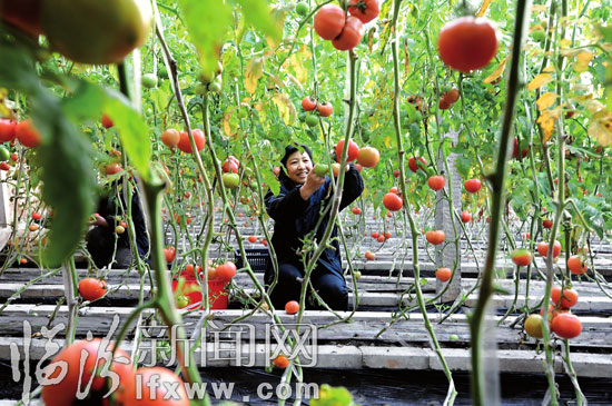 12月20日,翼城县唐兴镇封比村的菜农正在蔬菜大棚里收获西红柿。“两节”来临前夕,我市很多菜农通过大棚种植的新鲜蔬菜开始收获,有力地保障了节日市场的供应。(记者 赵俊堂 摄)