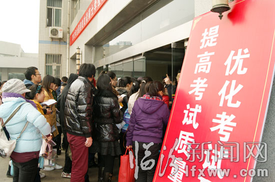 据了解,今年,全国研究生入学统考试行“一题多卷”的考试方式,即同一科目、多种试卷,卷面格式不固定、不统一。我市的考点设在山西师范大学,共有考场110个。参考考生3297人,比2011年略有增加。