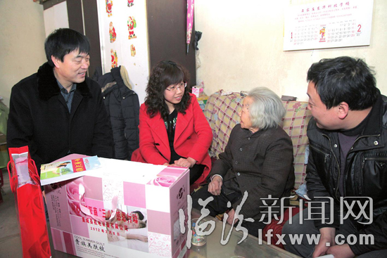 在“三八”妇女节来临之际,翼城县委统战部和妇联组织企业家,开展“慰问曾经为革命做出贡献的10个女党员”温暖活动,图为市人大代表、企业家栾兆俊(左一)一起看望党员老妈妈的情景。
