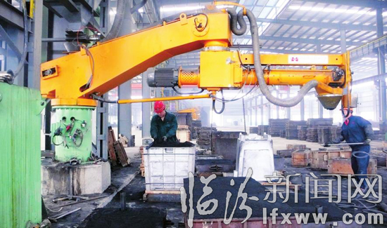 近日,山西韵德康精密机械铸造有限公司生产车间,技术工人正在刚刚竣工的流水线上作业。韵德康20万吨精密铸件是侯马市招商引资重点项目之一,该公司与全球最大的高精密平面磨床生产企业——台湾建德工业股份有限公司及杭州萧山康跃铸造有限公司联合组建的台资企业。项目总投资3.3亿元,全部达产后,将实现产值36亿元,利税8亿元。