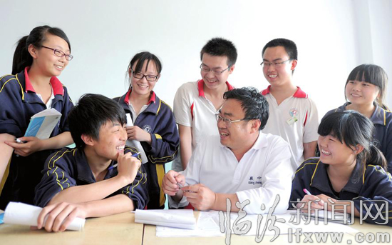 老师为学生们进行考前减压心理辅导。
