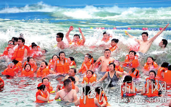6月23日,游客在华尧水上乐园体验海啸带来的快乐。当日,华尧水上乐园2012年水上嘉年华拉开序幕,恰逢端午假日,许多市民纷纷走出家门,与夏日的清凉水花来个亲密接触,在享受夏季戏水的动感欢乐中度过端午节。记者 闫锐鹏 摄