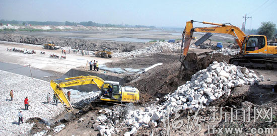 6月23日,在洪洞县汾河生态修复治理与保护工程城区段施工现场,一片忙碌的景象。该工程是落实省委、省政府转型跨越总体部署,实现市委、市政府“百里汾河新型经济带”发展规划的重大战略举措。工程总治理33.7公里,目前实施的城区段涉及6.9公里,建设内容包括河道清淤、橡胶坝蓄水、大坝护砌、引河工程和河岸景观,总投资15.1亿元。 记者 李自强 摄