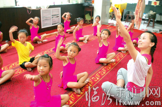 7月26日,在古县青少年活动中心,一位舞蹈老师正在教学生跳舞。该中心从青少年兴趣爱好出发,以培养创新精神和实践能力为重点,坚持公益性原则,开设了舞蹈、美术、音乐等专业。假期来临,这里成了孩子们的乐园。