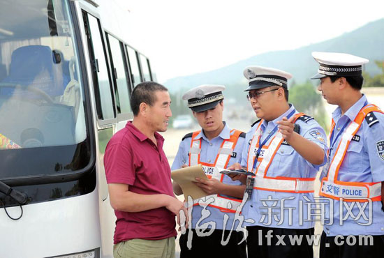 8月15日,蒲县交警大队黑龙关中队的执勤民警在辖区检查客运车辆。连日来,蒲县公安局制定了详细的安保措施,多警种结合,建立治安检查站,构筑安全防线,有效保证“环京护城河”行动的落实和实施,为党的“十八大”胜利召开创造和谐稳定的社会环境。