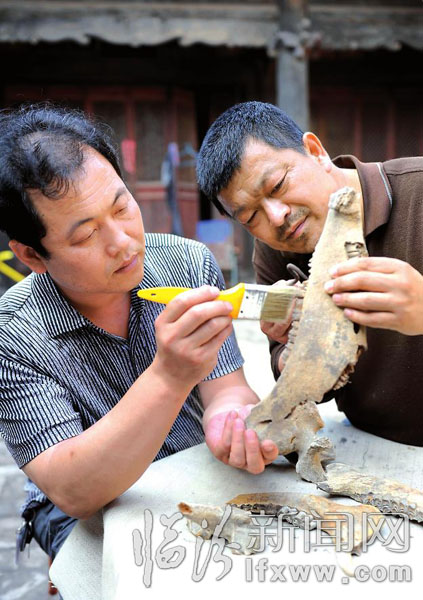 近日,丁村民俗博物馆的工作人员在对化石进行除尘保养。该馆加大遗址保护力度,定期对丁村遗址范围内的沙坑地带进行巡查清理,及时对清理出来的化石等文物进行登记、编号、入库。同时,也积极在遗址沿线的村庄、学校开展遗址化石等科普知识的宣传,全面促进遗址化石的研究和保护工作。
