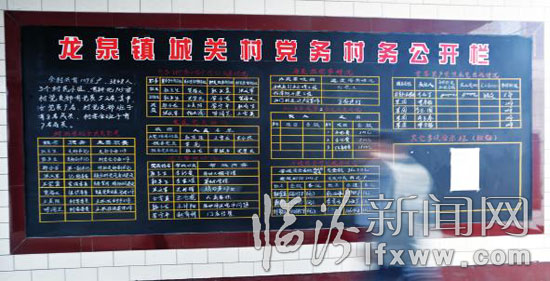 9月12日,一村民在隰县城关村党务村务公开栏前走过。