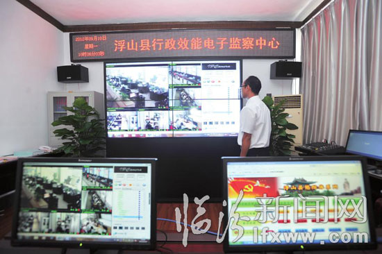 9月14日,浮山县纪委工作人员在监察中心监管各服务单位。