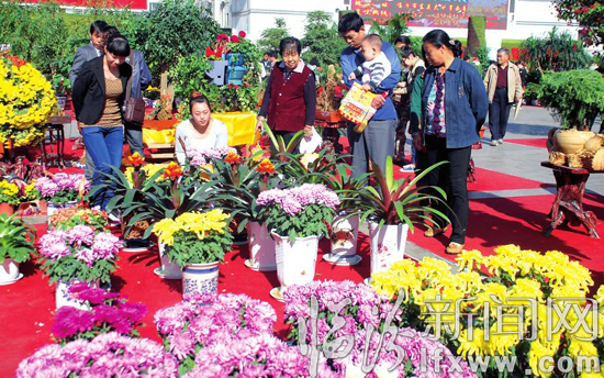 9月28日,市民正在临汾平阳广场观看花卉。当日,由市住建局、市文明办、市园林局主办的临汾市首届花王评选暨花卉精品展在平阳广场举行。通过活动的举办,让市民们感受到绿色带来的乐趣。