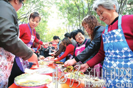 图为10月22日,在侯马市秦村北社区,第二届邻里节——百家宴活动拉开序幕。该社区居民秀才艺,展厨技,为老年人献上重阳节的祝福。张跟慧 摄