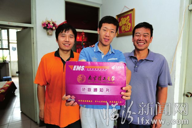 7月24日一大早,伴随着祝贺和掌声,居住在旋耕机厂小区的卫寒泽从邮递员手中接过南京理工大学的录取通知书。