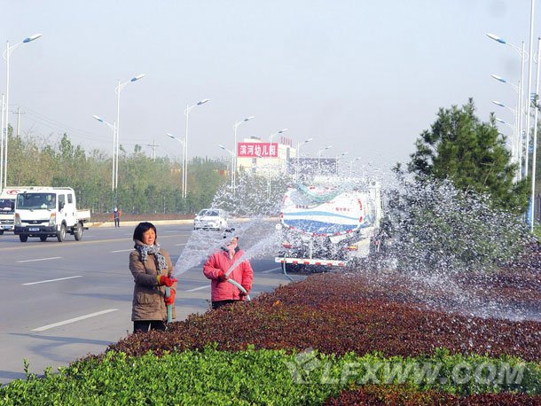 连日来,为确保绿化苗木在上冻前能够吸取更多养分,顺利过冬。市城市绿化二队出动五辆洒水车,组织四十余名工人,开启浇水泵,抢抓时间,加班加点对滨河东西路近四十余万平方米的绿化苗木进行冬浇。截至目前,已完成绿化苗木浇水任务的百分之三十。图为工作人员正在给绿化苗木浇水。(通讯员 杨乐 摄)