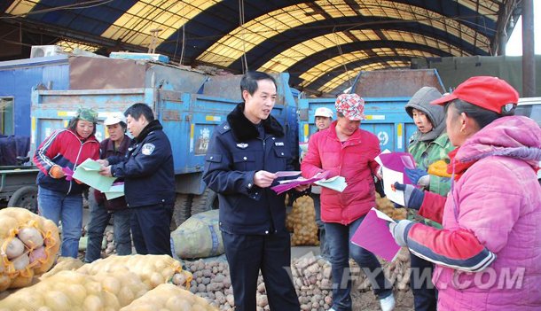 日前,尧都区司法局组织干警送法进社区,进菜市场,弘扬法制精神,让更多的人知法、守法、护法。图为工作人员在尧丰市场宣传法律知识。