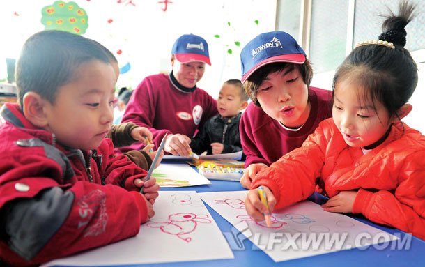 12月3日,在我市纯雪幼儿园,志愿者在教小朋友画简笔画。当日,安利临汾分公司举办了“以爱之名,与梦同行”志愿者公益活动,为纯雪幼儿园“春蕾班”的18名农民工子女送去了学习用品和环保玩具,并与孩子们进行了爱心手拉手联欢和美术手工创作。此次活动旨在唤起更多人加入爱心志愿者队伍,共同关爱农民工子女成长。