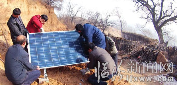 1月11日,安泽县电力公司的技术人员来到府城镇李垣村为村民闫长旺安装光伏太阳能发电设备。今年50多岁的闫长旺在大山里已经居住了30多年,由于离村子较远,30年来他家没有通电,一直点煤油灯生活。为解决偏远山区山庄窝铺百姓用电难问题,新年伊始,该公司免费为全县22户农家安装了光伏太阳能发电设备,极大地方便了农民的生活。 徐胤 摄