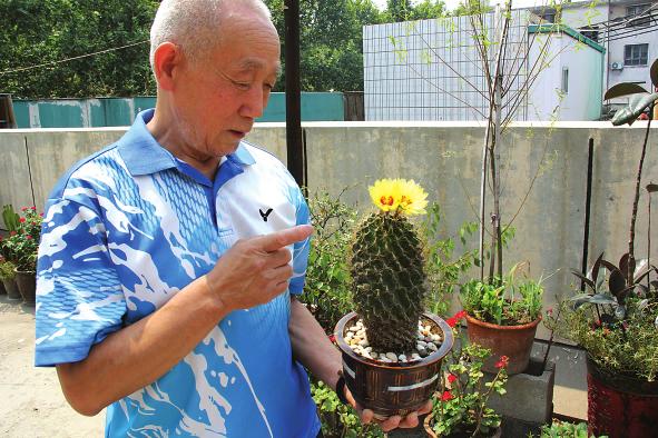 今年72岁的任守茂是一名养花爱好者,家里有40余种鲜花70多盆,开花的这盆仙人球高约20厘米,直径约10厘米。