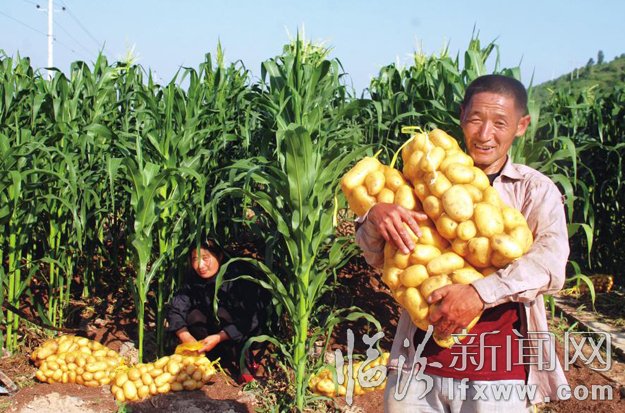 近年来,蒲县加快马铃薯示范基地建设,大力推广早熟马铃薯套种糯玉米复播白菜“三种三收”技术,使马铃薯成为全县现代农业发展的主引擎和农民增收的支撑点。图为日前该县薛关镇薛关村村民在收获早熟马铃薯。 本报记者 李自强 实习生 郑远飞摄