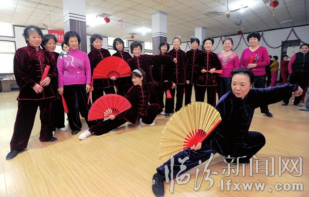 1月14日,市老年大学的指导老师在为学员做太极扇表演。连日来,市老年大学里欢歌笑语,学员们在积极准备着迎春文艺演出,她们通过舞蹈、诗朗诵等大众参演形式,迎接新春的到来。