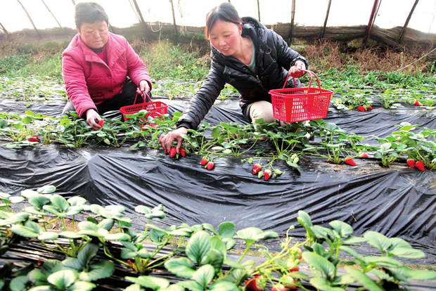 1月16日,侯马市张村办观庄村丰园奶油草莓采摘园里春意盎然,游客正在采摘刚刚成熟的新鲜草莓,感受现实版QQ农场带来的乐趣。该市各城郊村依托有利条件,积极发展观光、休闲、高效农业,有效促进了农民增收。