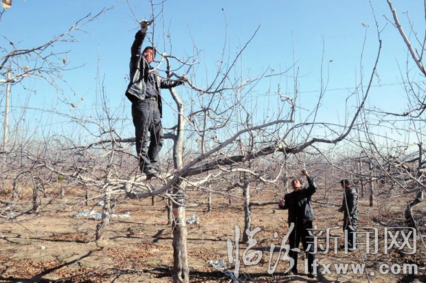 1月17日,吉县吉昌镇上东村的果园里,果农正忙着给果树进行剪枝,以提高来年果树的结果率。