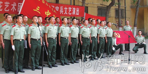 七月二十八日在武警临汾市支队三中队武警官兵在合唱《团结就是力量》。