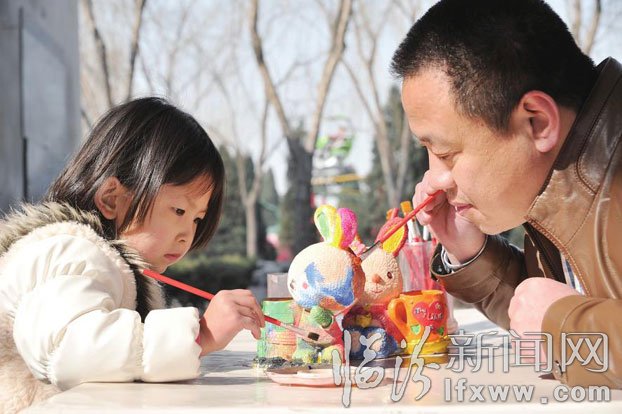 2月15日,在市区滨河游乐场,小朋友和家长正在涂鸦玩乐。