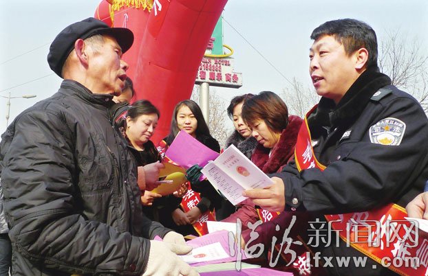 连日来,尧都区司法局和辖区各街道司法所的工作人员走进社区文艺汇演现场,设立咨询台,发放法律新规,解答群众有关法律问题,为居民提供法律援助。图为工作人员在为群众解答有关法律政策法规。(记者 闫锐鹏 摄)