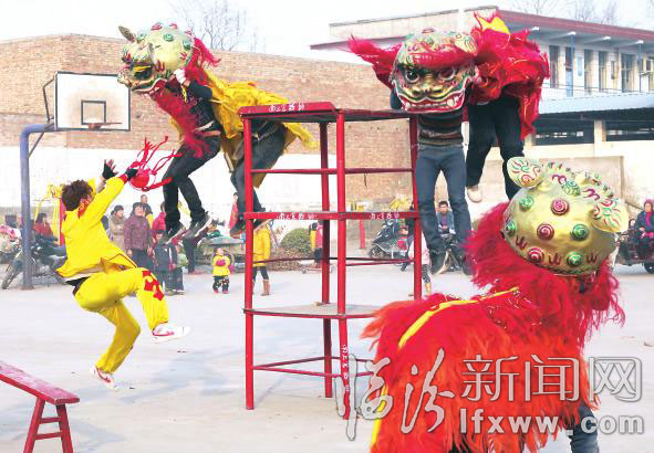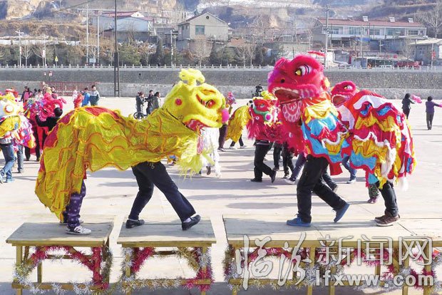 侯马市南上官村非物质文化遗产项目舞狮表演正在加紧排练。