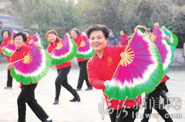 临纺社区的居民在表演舞蹈《和谐大中国》。