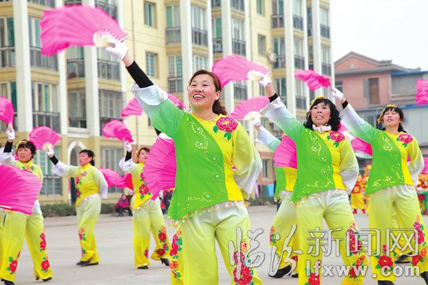 看完了锣鼓,伴随着喜庆的旋律,段店秧歌表演队缓缓进入会场。她们红绸飘飘,彩扇翻飞,展示了当代农民的质朴和善良,舞出了农民开拓创新、拼搏进取的决心和信心。