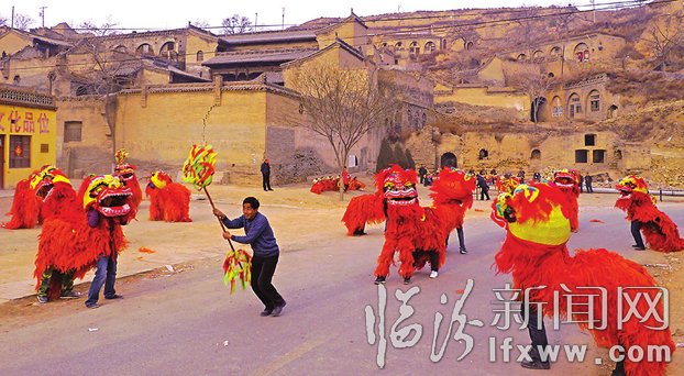 21日下午,位于汾西县城东南5公里处的师家沟,锣鼓喧天,狮群劲舞。