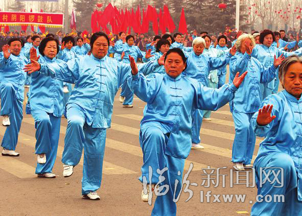 太极拳是我们中华民族先辈们几千年来集合各家学派融合发展而结出的硕果,我市杨氏太极拳是太极拳中的一个流派,其构思细腻,编排合理,结构严谨,缓慢柔和,姿势舒展优美,不仅给人以美的享受,更是强身健体的最佳体育锻炼项目。