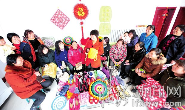 2月21日,浮山县响水镇程村的帅妮玉片加工合作社里热闹非凡,合作社负责人张丽正在向村里的姐妹们传授编织新技术。该合作社每年编织各类产品10万多件,年创收200多万元,带动周边300多名妇女长期从事手工编织工作。浮山县还将该社作为县农广校阳光工程主要培训基地,截至目前,共举行各类技术培训130余场,培训各类手工编织技能人才2000多人。