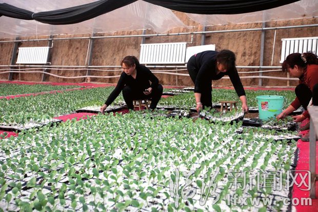 近年来,浮山县委县政府依托张庄现代农业示范园区,将设施蔬菜产业作为全县农业转型发展的重点,突出发展高效农业,进一步提升农产品市场竞争力,加快产业转型升级。图为在张庄现代农业示范园区育苗中心,工作人员正在为早熟西瓜育苗。许亚峰 摄